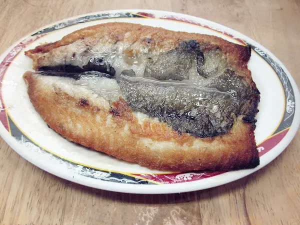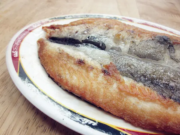 煎虱目魚肚,油亮香酥的外皮,魚肉軟嫩,口感就是外酥內嫩,油並沒有濾得很乾,所以帶點油膩的滋味,讓口感更佳,非常好吃呀!