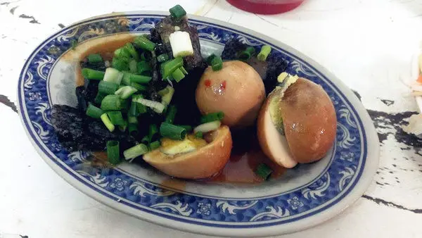 其以八角、花椒和生薑滷製的小菜,就擺在前頭,記得點一盤滷菜來吃吃,滷菜可是好吃又便宜呀。