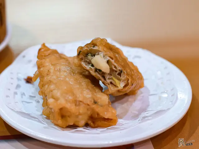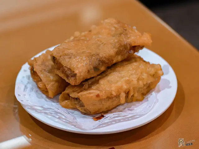 這是店家廣受好評的品項,裡面有馬蹄薺、韭菜、蝦仁和魚漿等,腐皮炸起來式比較有厚度的,嘗起來脆度高,算水準不錯