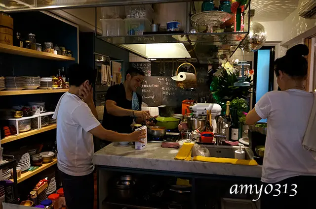 廚房裡忙碌的帥哥美女。從只有R&P的兩人時代,到現在有5個人了,有時候amy還是不太習慣,像這天按電鈴時回答的是一位溫柔的女生,她一喂時,amy當場楞了三秒,差點要說“不好意思按錯了”,還好胖胖很快來應門,不然我一定以為按到隔壁的電鈴了。