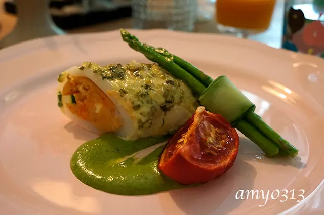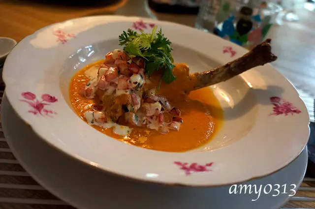 小卷釀鹹鴨蛋馬鈴薯佐白酒九層塔起司醬這天的小卷相當軟嫩鮮美,再遇上鹹蛋的鹹香,有著令人意外的好滋味,當然馬鈴薯的綿密與香甜也讓它增色不少,搭配上濃郁的白酒九層塔起司醬,真是天殺的好吃。