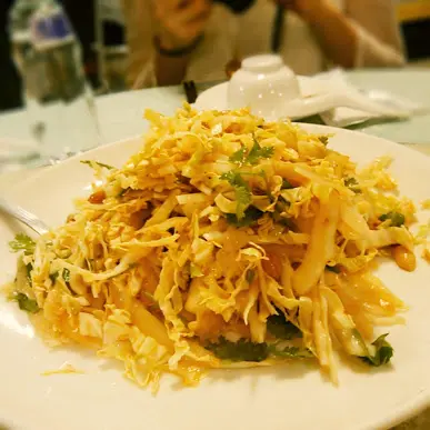 酸酸的醋醬搭上高麗菜司 香菜和花生米