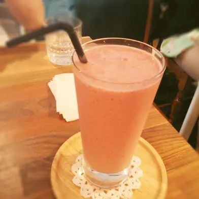喝起來除了草莓果粒之外還有特殊涼涼的口感,健康新鮮滿點唷!