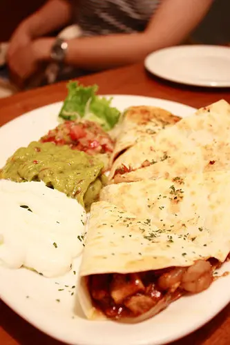 我們後來點了墨西哥酥餅裡面有雞肉及蝦仁雙料