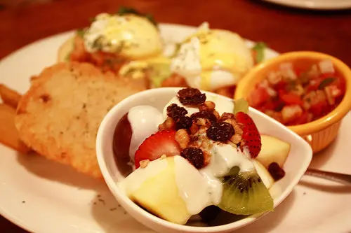 整份套餐搭配黃金脆薯和薯餅還附莎莎醬和水果盅