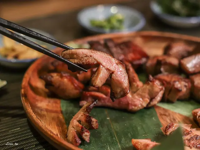 將後段牛舌使用不同的切法,因為多切了很多刀,烤時焦脆部位面積比較大,所以吃起來外焦脆內軟嫩,與阿諾比起來,脆口的感覺會更多一些,但依然保有一些柔軟的質地,我自己最喜歡的便是阿諾與牛舌花這兩個。