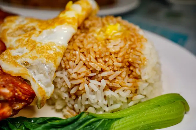 太陽蛋底下是有淋上醬汁的飯,單吃或配雞腿吃都好,米飯是港式餐廳較長用的長米。