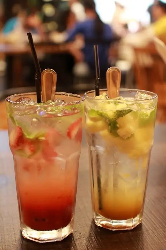 鳳梨薄荷氣泡飲帶有大量的鳳梨丁,是現切的鳳梨丁不是罐頭的糖漿鳳梨