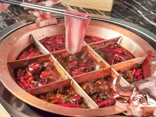 九宮格鍋裡的格子溫度不盡相同,分為「燙」、「煮」、「酣」三種功能,中心格溫度最高,用來燙毛肚、肉片等食材;十字格溫度次高,適合煮蔬菜、豆腐等;四角格則是文火,適合燉骨髓、豬腦等慢煮10分鐘以上的食材。食材也會被分散烹煮,食用時更容易撈取。