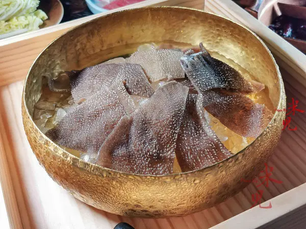 生鮮黃喉。黃喉是在台灣較少能吃得到的部位,是牛或豬的主動脈,也就是大心管的部位,吃起來嫩脆爽口。