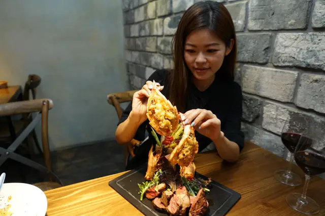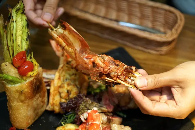 大口放在口中感受奢侈的美味、吃蝦吃到飽就是這份頂級海陸雙饗了🤣