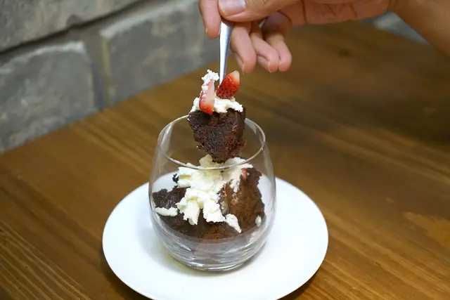 細細啜飲這份現磨咖啡豆沖出的新鮮、與餐後的布朗尼完美搭配