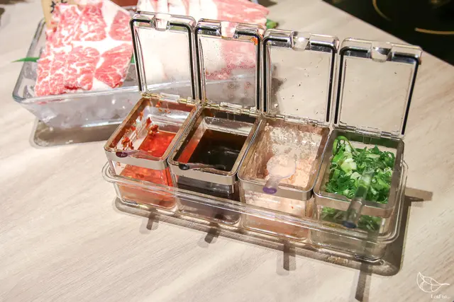 點完餐之後會先將醬料送上桌,不過或許也是對自家湯頭特別有信心,沒有附上其他口味過重的調味醬料,而是只有提供辣椒、烏醋、海鹽和蔥花,當我後來吃到烹煮之後的食材,也覺得這樣的選擇是正確的,鮮甜湯頭煮出來的食物,根本不需要任何調味料啊。