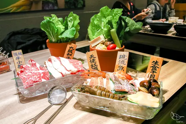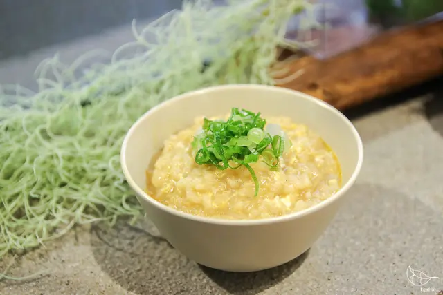在所有餐點上桌時,我看見米粒飽滿的珍珠米飯,又瞥見一旁的海鹽、蔥花等調味料,再看看今天點的所有海鮮及肉類、還有花盆裡的阿里山機能蛋,忍不住想起之前到但馬家涮涮鍋二館吃到的鮮美雜炊粥,既然所有東西都到位了,於是決定將白飯留著忍住不吃,吃到最後自己也來試試看吧!