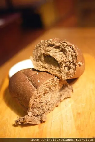 黑麥麵包口感紮實有嚼勁,帶點蜂蜜淡香,而且愈嚼愈香,沾所附的奶油吃又是另一種風味,黑麥麵包可再續,我們後來又續了一條。