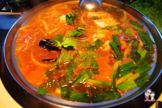 這鍋是大醬湯,裡頭除了菜菜之外,還有一些海鮮配料,