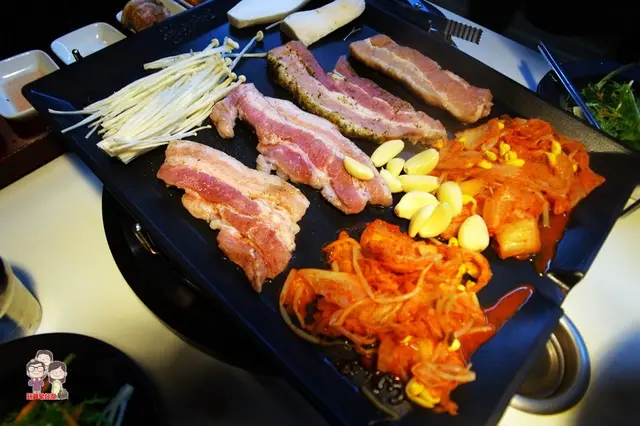 烤盤上還有韓式泡菜,同樣可以無限的續,