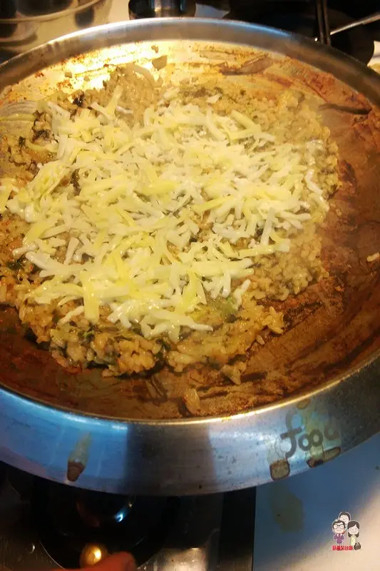 最後灑上起司,等起司融化後就能夠享用,吃起來其實有點像石鍋拌飯。