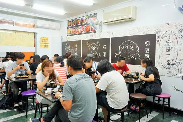 招牌上的三隻就是臭豆腐怪、皮蛋怪跟米血糕怪--也就是「三怪」拉