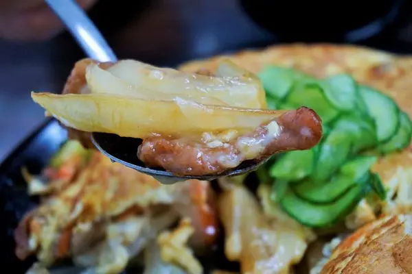 吃起來蛋包意外的滑嫩   和咕咾肉搭配起來真是一絕