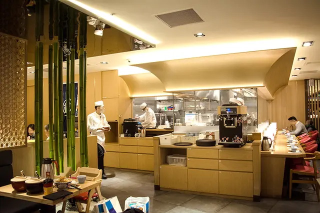 目前金子半之助在臺北有兩間分店,信義區新光三越新天地A8館B2樓層以及微風台北車站店,限現場排隊不能預約,在平日晚上來時大約2組人在排,人到齊才能入坐。