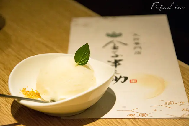 套餐雪酪冰淇淋只有單球,柚子風味香氣清爽明顯,綿滑冰沙口感。如果點天丼搭配霜淇淋一支款可以以NT$49加購,限外帶。