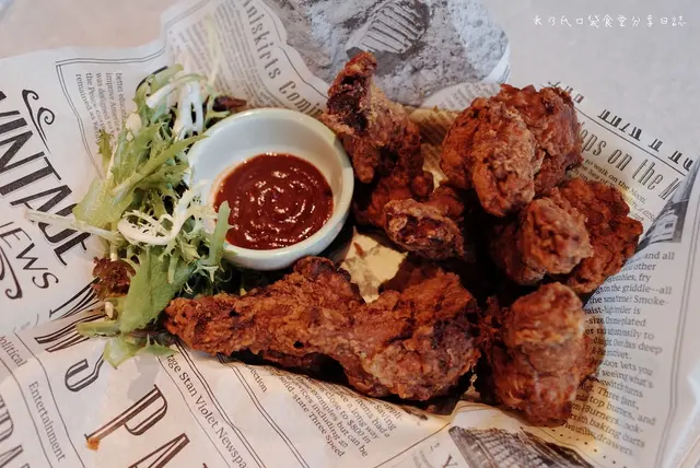 只敢吃微辣的我看到這菜名有種被下戰帖的Feel~確實會燃起試膽慾望XD 這道小棒腿是以蔥、辣椒、醬油、米酒、薑、蒜仁香,醃一日入味,再油炸至表皮金黃極脆,醬料部分則是混搭肯瓊香料粉、辣椒醬、西班牙辣椒粉、Tabasco等特製辣醬,可以依照自己的喜好沾取,我個人覺得稍微佐醬食用還不錯哦~香辣會上癮!而且咬下去肉質鮮嫩好吃哦。