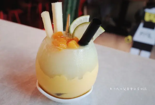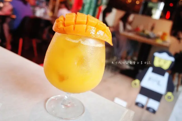 超吸睛飲品隆重登場~首先這杯光看外表色彩就超解渴的…芒果甘檸釀,痾~點這杯飲料需要一點勇氣耶!哈哈!它實在太好喝了,就算唸出來有點尷尬還是要點!以可愛的圓弧型透明杯裝盛,融合了香濃芒果、清甜甘蔗、酸香檸檬三重果香,以芒果優格為基底,堆疊甘蔗檸檬冰沙,上層點綴讓人想一口咬下的芒果丁,口感非常純真自然富有層次鮮香,還吃得到三種風味的水果本人,是一款彷彿躺在南洋熱帶島嶼沙灘上,任由冰涼海水輕輕沖刷的度假風飲品,我們都很喜歡。