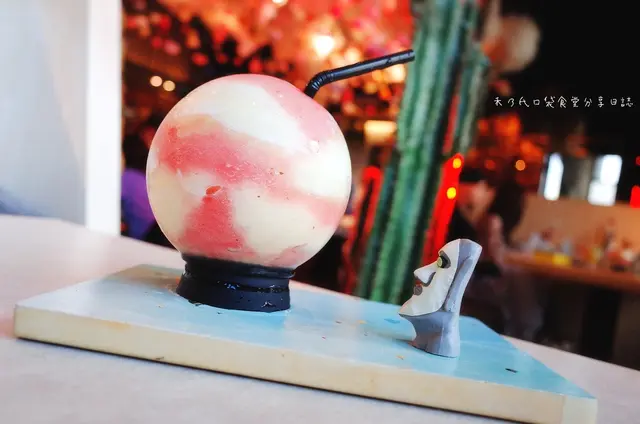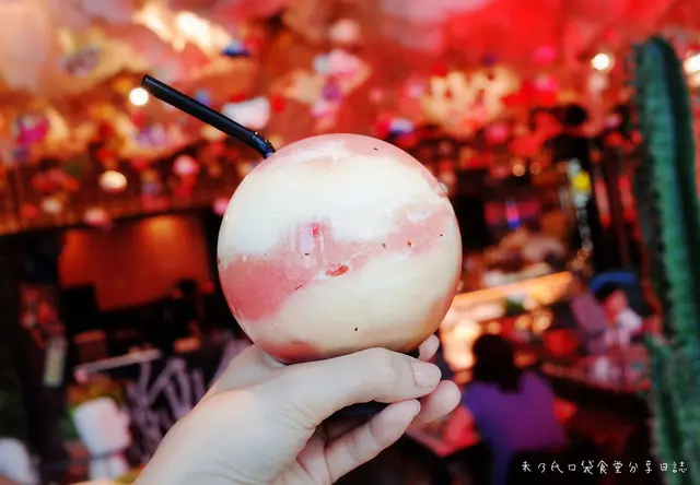 哇!!眼前出現的是一顆粉嫩色的星球耶,好美哦!所有人的焦點注目在這杯「玫瑰夢幻西球」身上,令人愛不釋手的模樣實在捨不得攪拌,更捨不得喝掉它,裡頭結合了鳳梨、百香果及西瓜,紛美淡雅的色彩緩慢流竄飄移,就如同開滿玫瑰花的粉紅星球,佈滿內心對異想世界的幻象,飲入後~馥郁花果香氣結合冰沙與鮮奶油的綿密滑順口感,是讓人想閉著眼睛專注享受的滋味~很推。