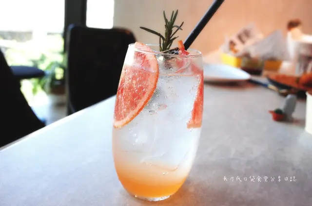 以氣泡水加入寶石般粉紅的葡萄柚果肉與迷迭香,底部的漸層帶出渲染的美感,葡萄柚的獨特香氣喝起來有著明亮活力感,頗受我們同行友人"山米"的好評(是喝一口就拿在手上不放的那種XD)。