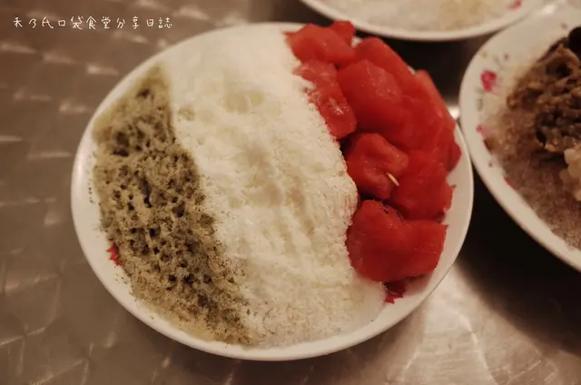 如彩虹般繽紛的【三色冰】,由左至有右分別是日風抹茶、濃濃煉乳、消暑西瓜,可以同時品嘗到各自的冰味,還可以攪拌在一起變成抹茶牛奶、西瓜牛奶、或是抹茶西瓜激盪出的創意新滋味XD
