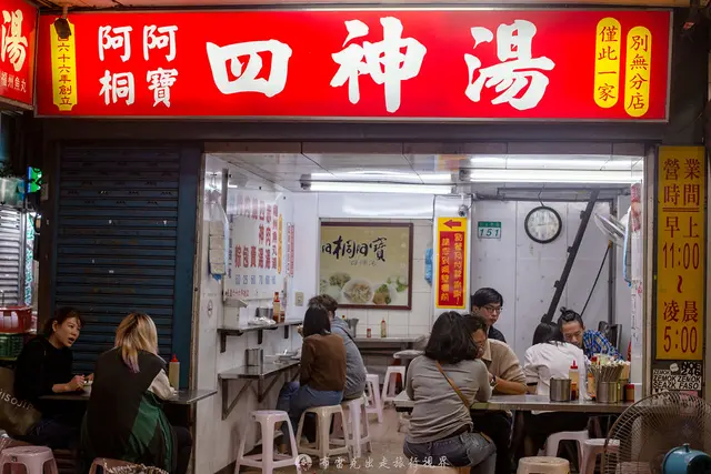 《阿桐阿寶四神湯》就位於民生西路上,離捷運雙連站只有5分鐘的距離,大概就是過了承德路就能看到大紅色的招牌,再往前一些則是寧夏夜市,《阿桐阿寶四神湯》從1977年開業到現在已經超過40年了,真的是台北的老字號,《阿桐阿寶四神湯》營業時間是從早上11點到凌晨5點,也是許多人會來吃的的下午茶跟宵夜場。