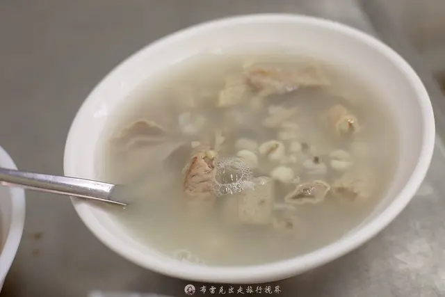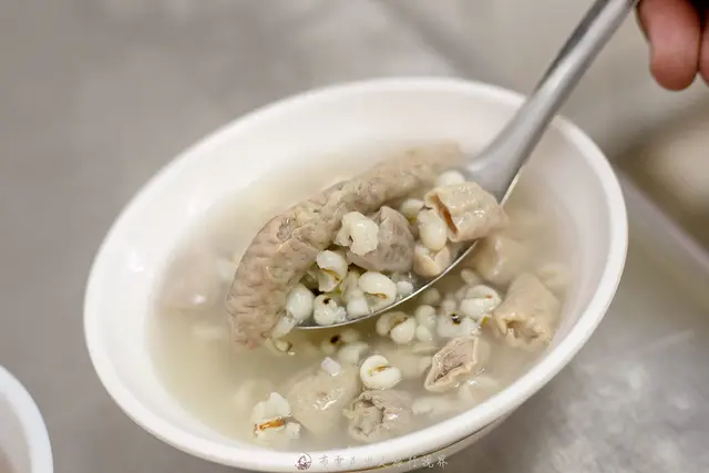 《阿桐阿寶四神湯》當然就是以四神湯當做招牌,四神湯以大骨湯頭當基底再加入芡實、山藥、茯苓與蓮子藥材去燉煮,然後是加入了豬腸和薏仁去熬煮,比起長春四神湯是比較濁一點,但湯頭的味道很足香氣很夠,溫醇好喝,中藥味淡淡的不會太重,天氣冷的時候來一碗很舒服。