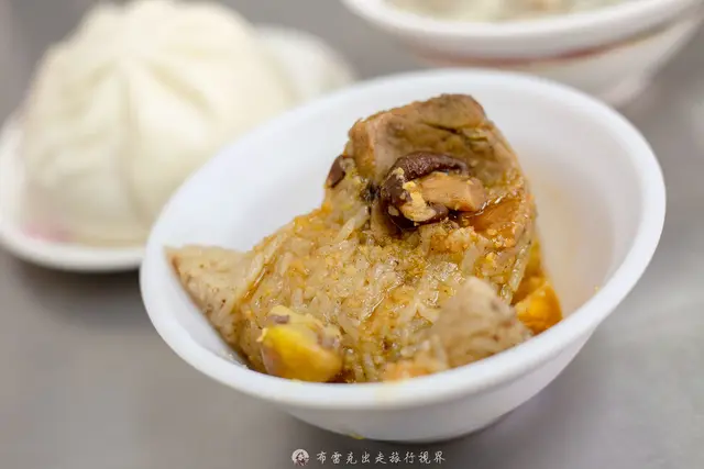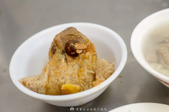 反正就是3D油飯的北部粽,北部粽是先將生糯米與餡料包在粽葉裡頭,在放入蒸籠裡蒸,《阿桐阿寶四神湯》的肉粽裡面是包著瘦肉、香菇、蛋黃跟栗子等餡料,香氣很夠啦!蒸的也不會太乾,加上甜辣醬提味吃,其實還不錯啦!原則上我還是喜歡南部粽的味道跟口感。