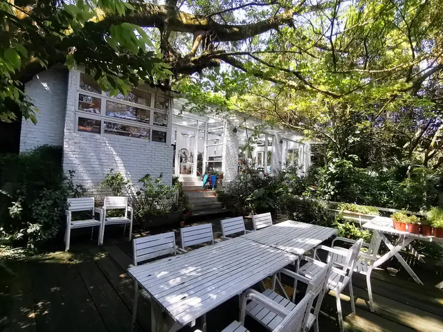 雖然戶外有提供座位區,但目前看似沒在整理,落葉頗多的
