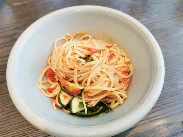盛裝麵條的碗還滿大滿深的,義大利麵相比起來比燉飯的份量略多一點