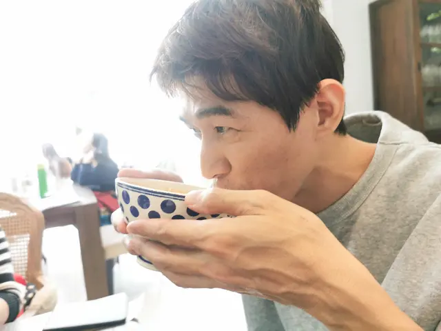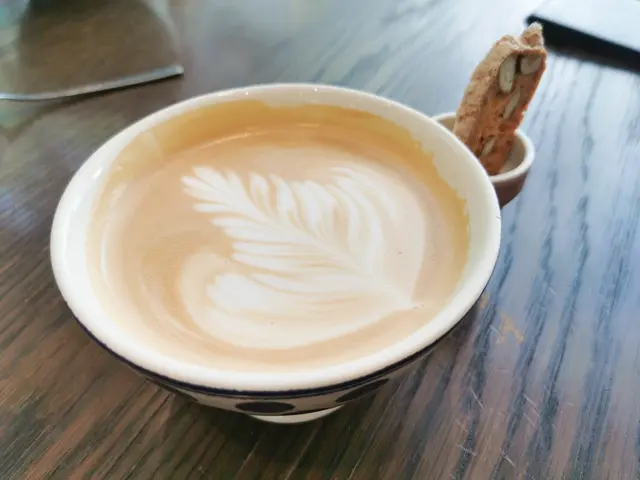 用碗裝的拿鐵滿酷的,豪氣的雙手併用像喝酒的方式來乾一杯
