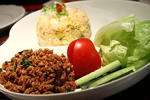 這個是目前的午間特餐其中一道,好像是打拋雞肉飯配蟹肉炒飯之類(完全顧聊天忘記看菜名了......),那打拋雞肉很不錯吃!炒飯也炒得很好!所以到最後米兒幾乎忘我的一直吃這道!