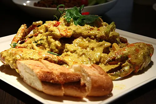 到底為什麼中午要點一道咖哩炒蟹啊?二個女生吃相不太好地在那裡啃螃蟹.........不過還炒得真是好吃!連醬汁沾麵包都很開胃 !