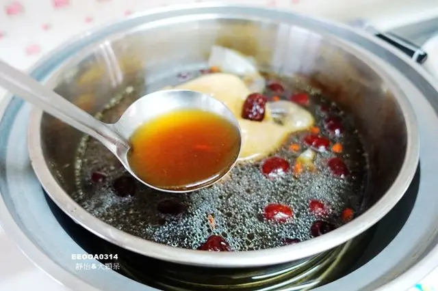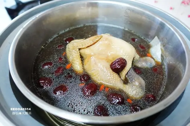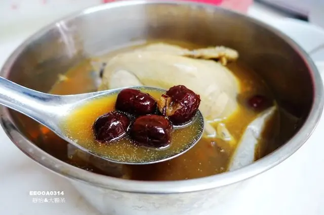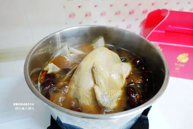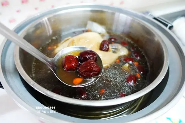 一整鍋除了整隻全雞外還有大量的紅棗、枸杞,都是小捧油可以接受的食材
