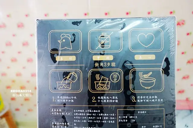 雞湯採用真空包裝,外袋上有品名、製造日期及有效期限,加熱前一天可以將其由冷凍庫移到冷藏,等到隔天要加熱時冰也退得差不多了~