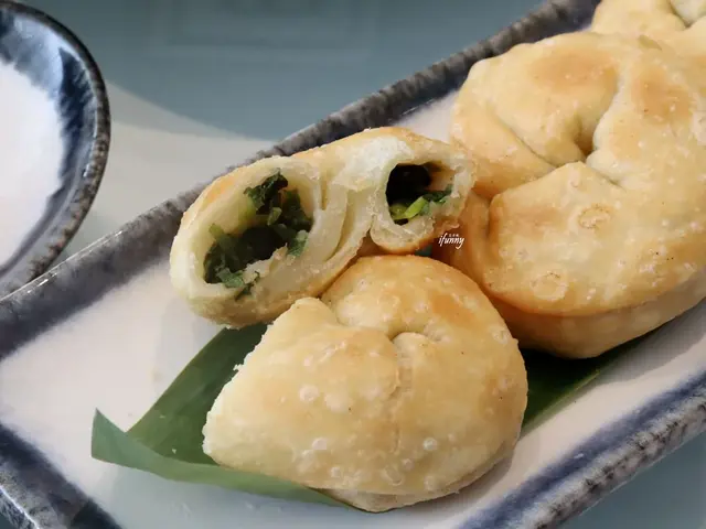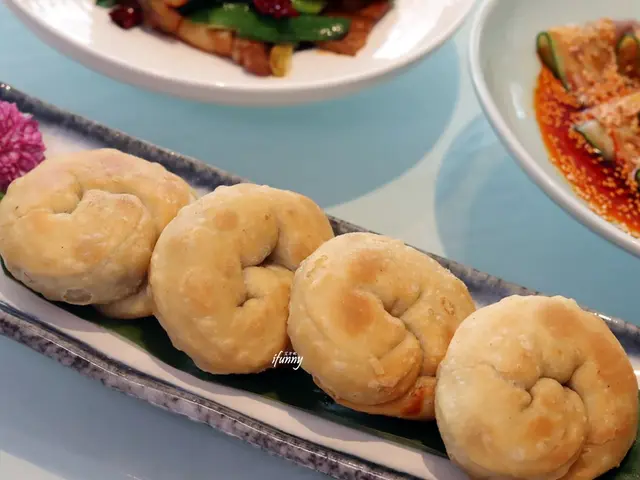 點心主廚特別選用半燙麵把滋味鹹香的蔥花餡捲起,再盤成螺旋狀,鬆弛半小時。精準的火侯掌控,令入口時嚐到外皮的金黃酥脆,還有飽滿多汁清甜的青蔥內餡,鹹香誘人的滋味,令人一吃就愛上。