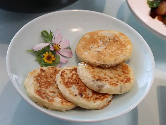 「酒釀」在江浙一帶被稱為「香糟」,廣泛用於小吃或是糕點中。將加入小米酒的老麵麵團,與酒釀及葡萄乾混合均勻,並靜置發酵8小時,取麵團壓扁再以小火煎上色。