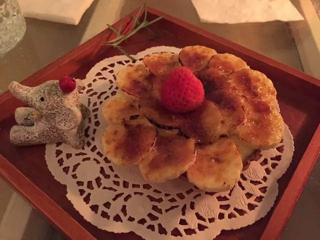 再來是女兒點的焦糖香蕉塔,香蕉上鋪著脆脆的焦糖加上底下酥酥的塔皮,雖然有點甜,但也頗得女兒的心
