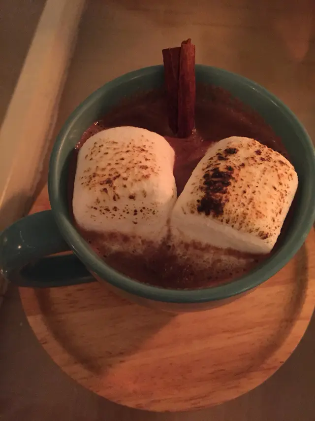 最後上桌的就是本人點的巧克力飲了,沒錯!一樣是看到蘭姆酒3個字而點,喝起來沒什麼酒味,棉花糖融化後更添加濃厚滑順的口感。