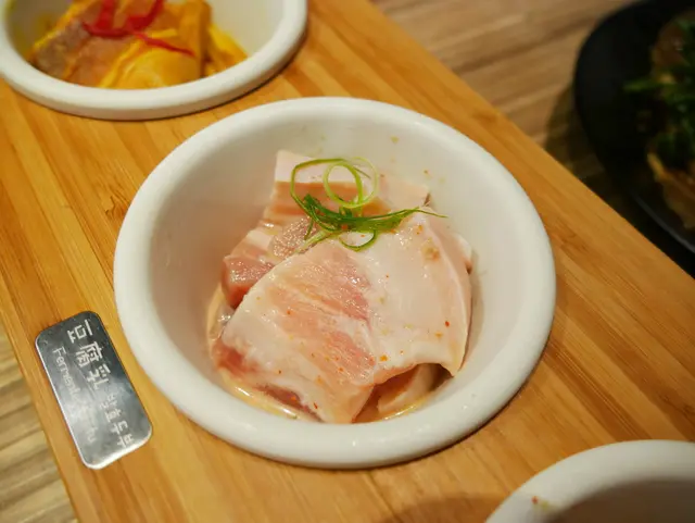 這邊的豬五花一開始送上來時,就有切成小塊小塊的
