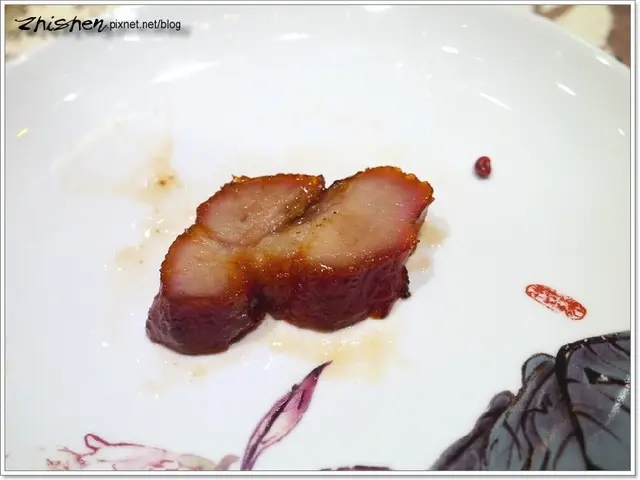 叉燒外緣的醬汁賦予叉燒閃亮光澤,因為叉燒的邊角沒有太多多餘油脂區塊,肉質軟嫩帶點彈性,有著溫和鹹甜的油香,是好吃的叉燒無誤,但知道價錢的魯還是倒吸了一口氣Orz