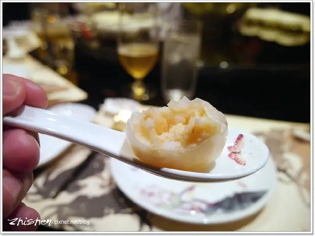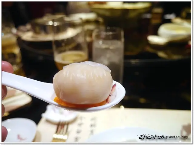 Ω這餃子外皮不僅吃起來不會黏牙礙口,內餡蝦肉有著自然的Q彈感,咀嚼時嘴裏散開的濃郁蝦香,應該是魯這個很少吃飲茶的人吃過最好吃的無誤。