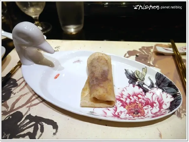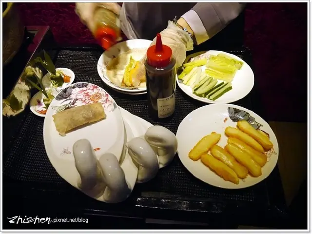 師傅片下來的片皮鴨,再接著由服務小姐為我們一手操刀來上捲。