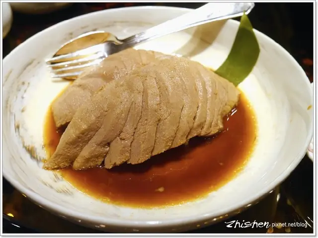 Ω鴨片皮後,師傅會取其餘的鴨肉部位來上滷水另外呈盤,不得不說這鴨肉不僅不柴,而且還特別軟嫩且富有鮮味兒,完全不用擔心會被置之不理。